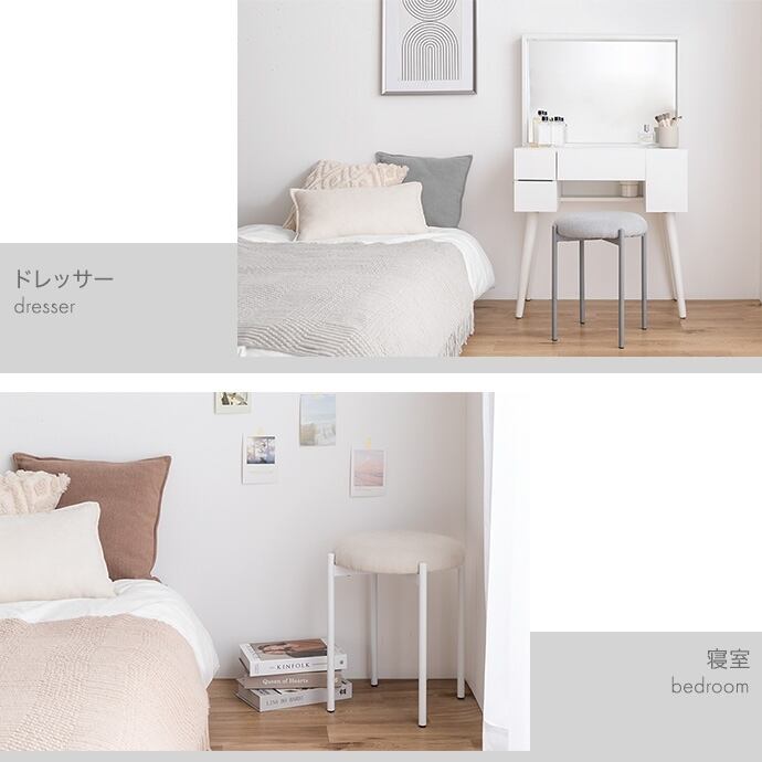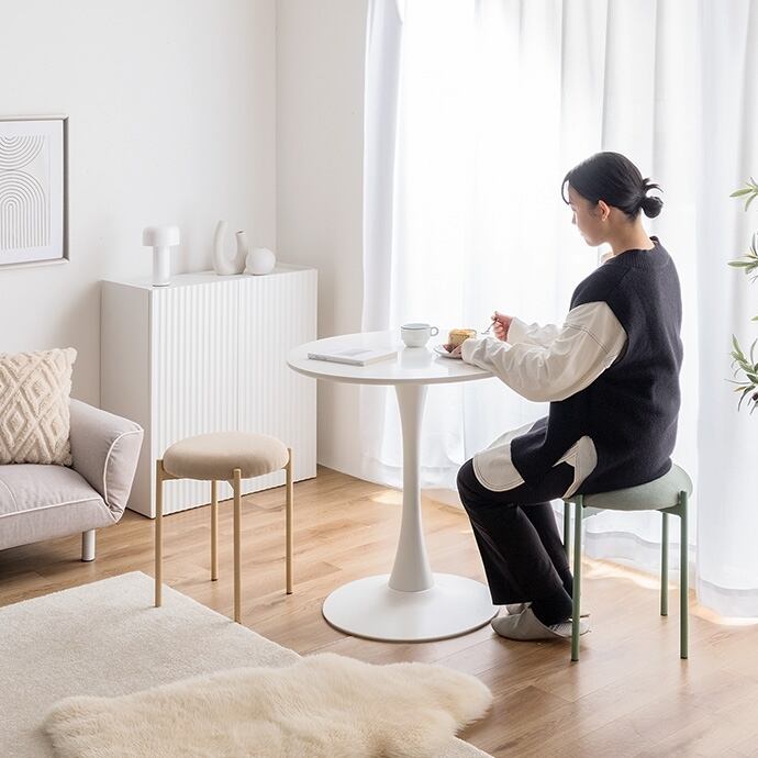 ダイニングや玄関、ドレッサー前など、どこに置いても映えるデザイン性と、しっかりとしたクッション性で座り心地も快適です。